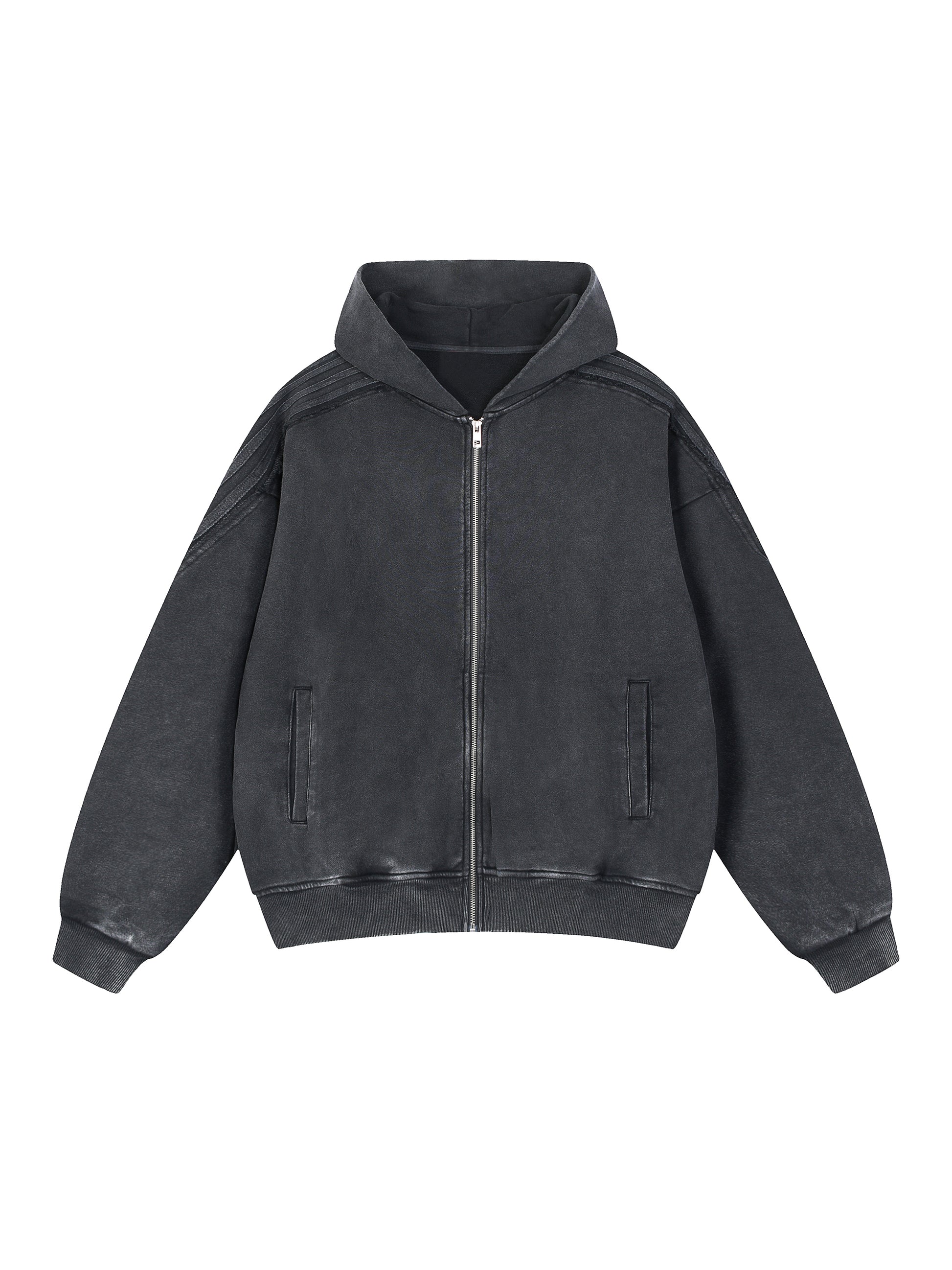Snow Washed Tape Raw Edge Zip Hoodie